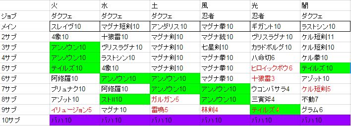 を考えてなかったり、サブスキルを考えてなかったり、マグナもLV150,SLv15で考えてないので、最終的には自分で調整する必要があります。