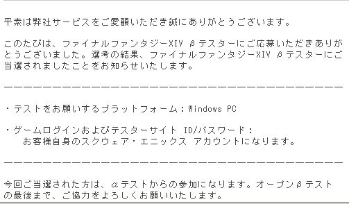 FF14は10回目のテスターでした。