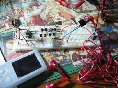 というわけでブレッドボードでヘッドホンアンプを組んでみました。