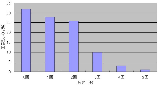 SGLv1を全段(10発)ヒットするように立ち、アンフロを着てもらった。100回SGを打ち込み、それぞれの反射回数の平均と分布を求める。