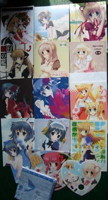 二枚目。同じく二日目の音関係でもらったチラシとか神袋とか。ちゃんとカレーもいれといたぞ!シンクアーツではハンカチもらた。まんなかのでっかい神袋はC-CLAYSのです。最初の8cmCD以来ヒットないなぁとおもいつつ、毎回買ってるサークル。再録あったのでちょっとうれしかった。