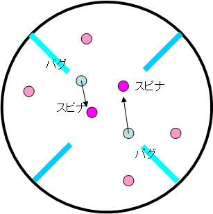 とにかく初期位置だと扇型にバグに囲まれているので、バグをもっと寄せ集めてまとめるというのが③です。