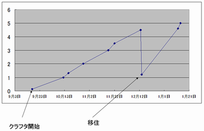 おそらくもっと二次曲線のようにはじめは伸びが少なかったはずです。