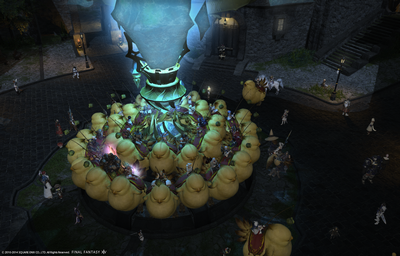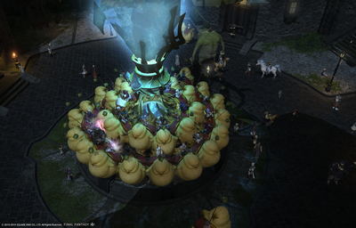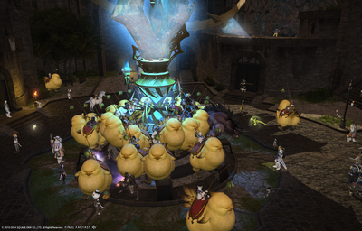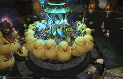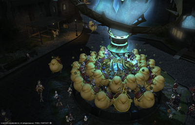 エーテライトに陣取るチョコボたち