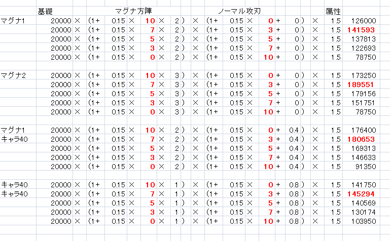 × { 1 + 方陣攻刃 × ( 1 + マグナ加護 ) }
