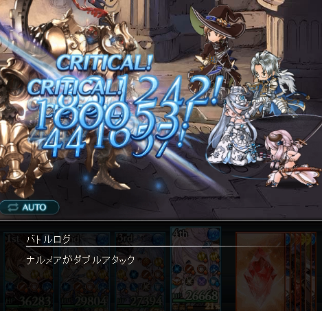 4番手ナルメアだと、4象手の効果(追撃発生するけどゲージの溜まりが遅くなる)によってナルメアだけ奥義チェインを1回飛ばす。なんてことが起こっていました。