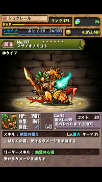 スキルはMAXなので15ターンチャージで5ターンダメージ半減してくれる。