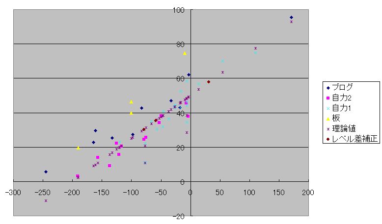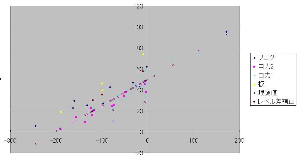 横軸は(レベル差+自DEX-対象STR-対象AGI)の値です。