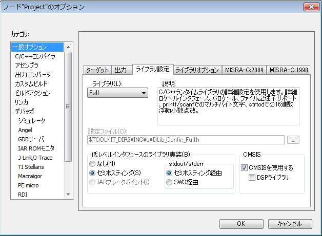 次に[ライブラリ設定]タブで[ライブラリ]が[Full]であること、